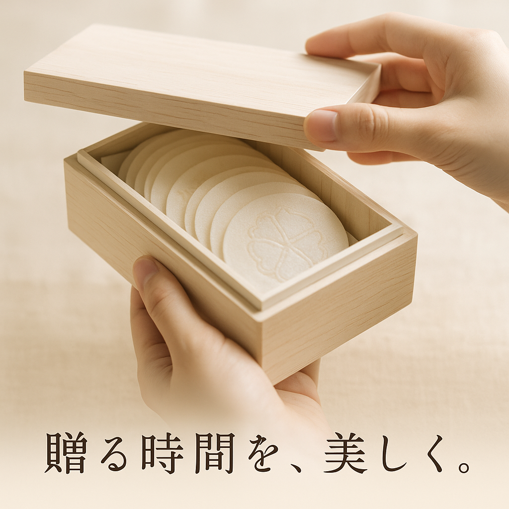 白木の桐箱に映える金箔のロゴや、季節限定の淡い色合いの掛け紙など、どの要素も“華美ではなく、上品”。この控えめな美しさが、贈る側の誠実さと気遣いを静かに伝えます。